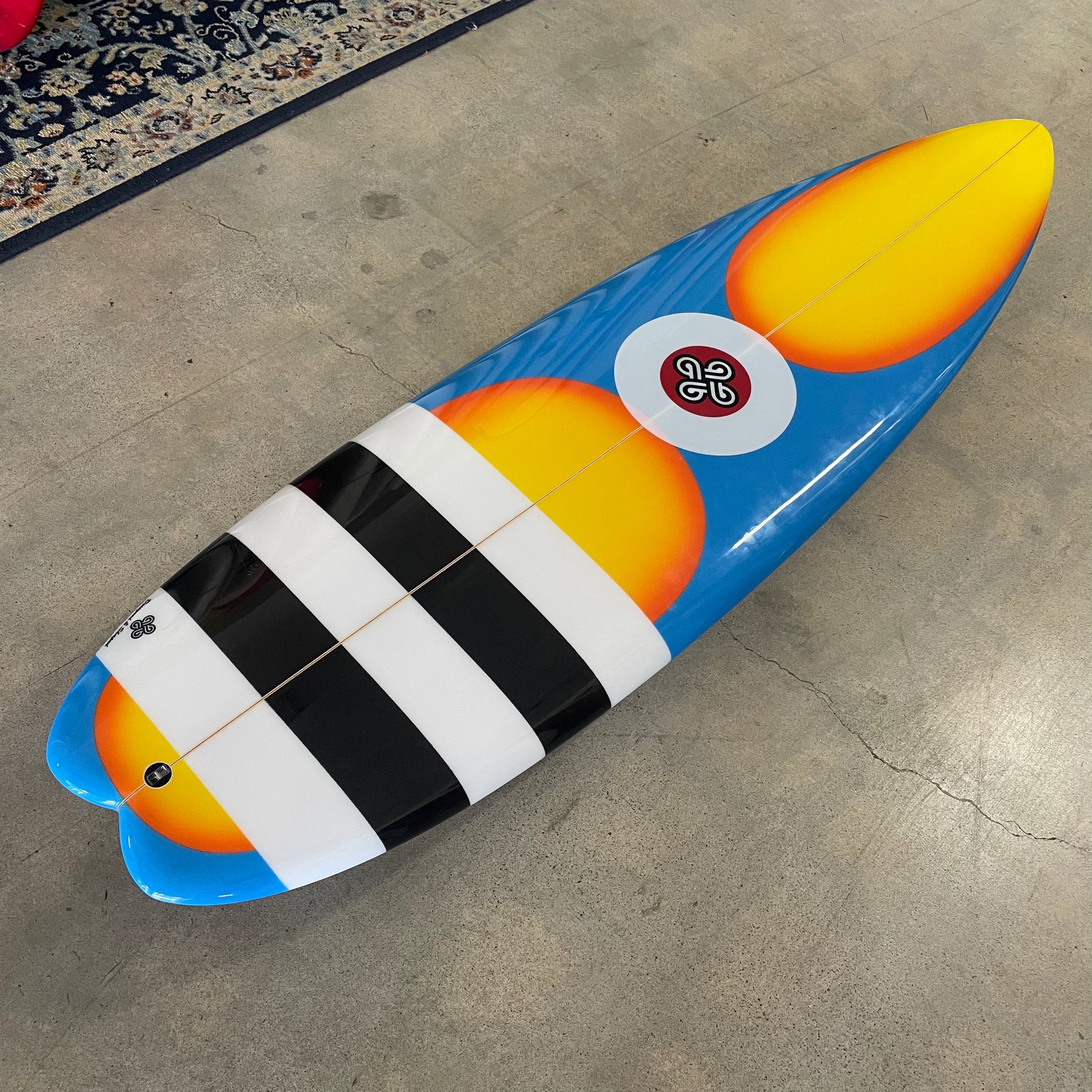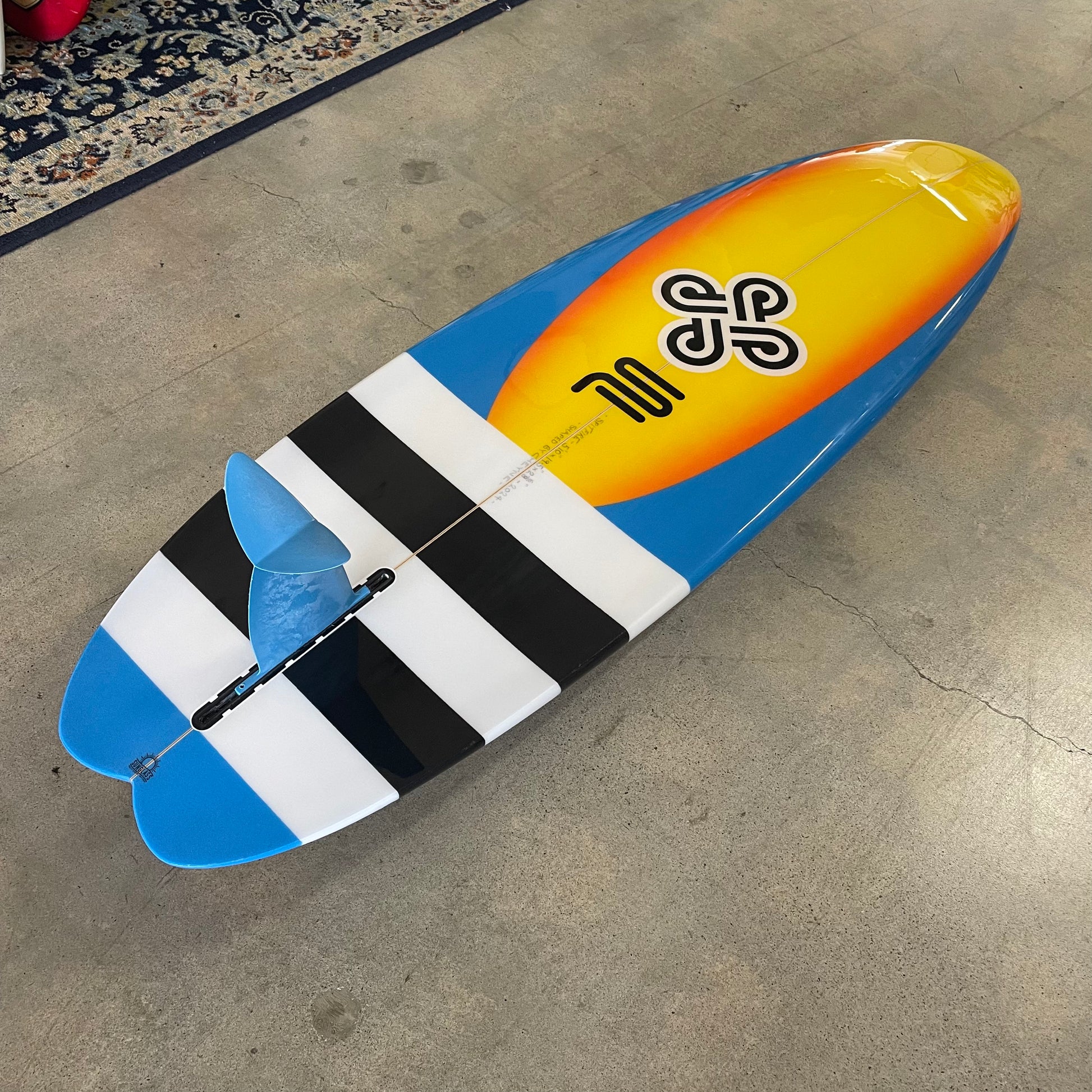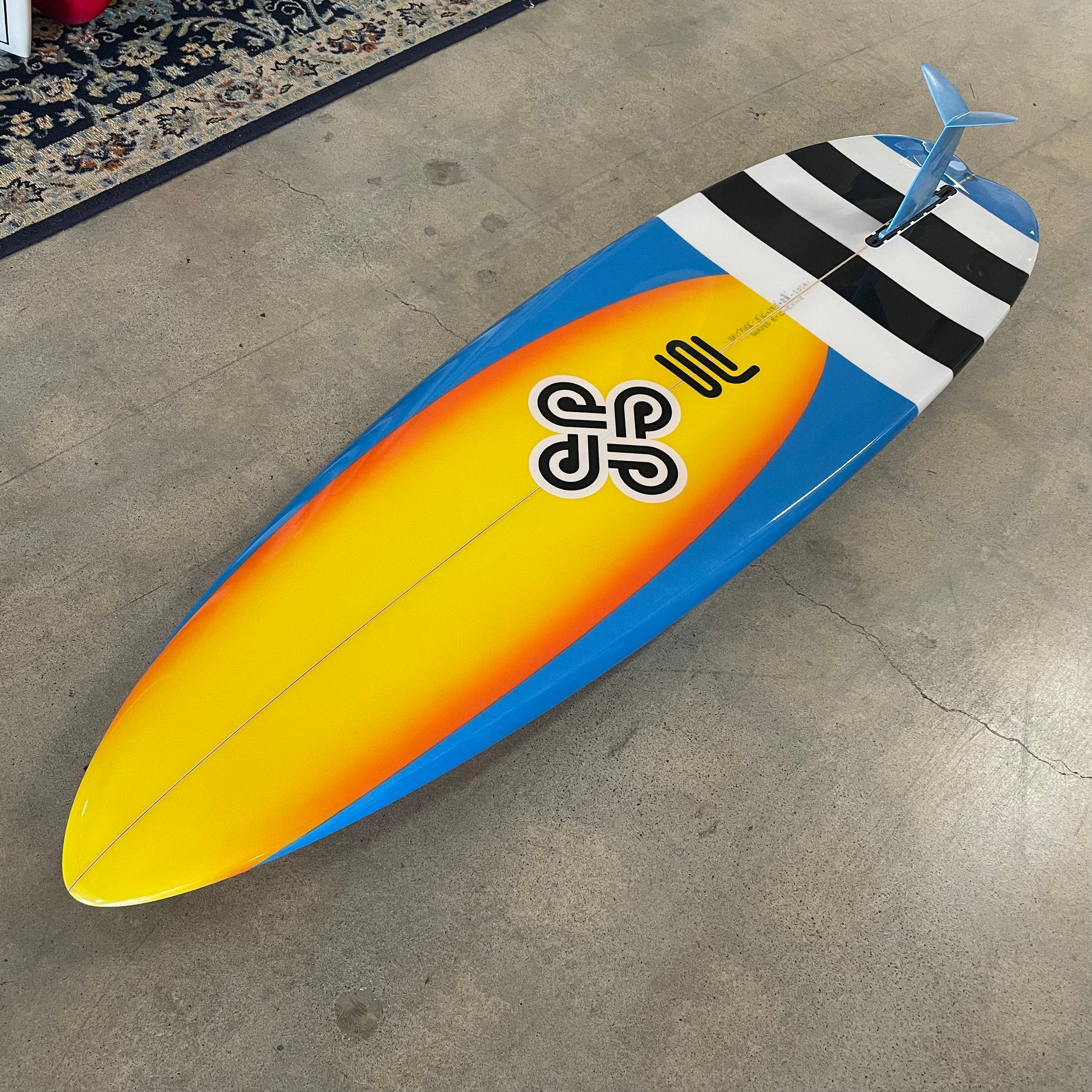 Color: Blue with Orange fade airbrush, and Black and White stripes