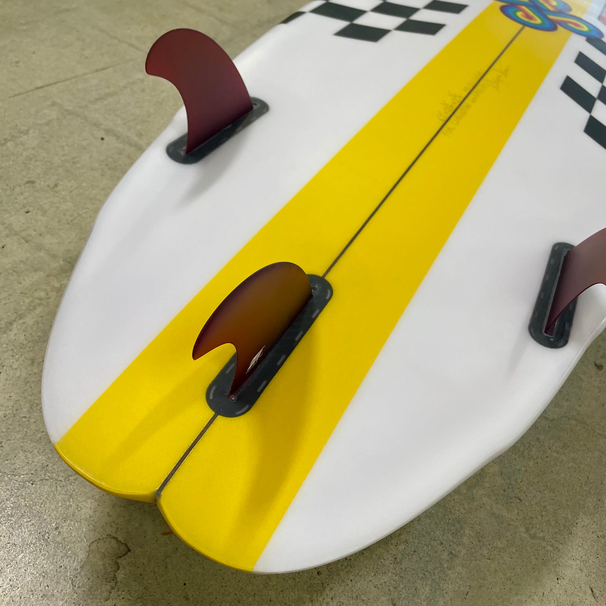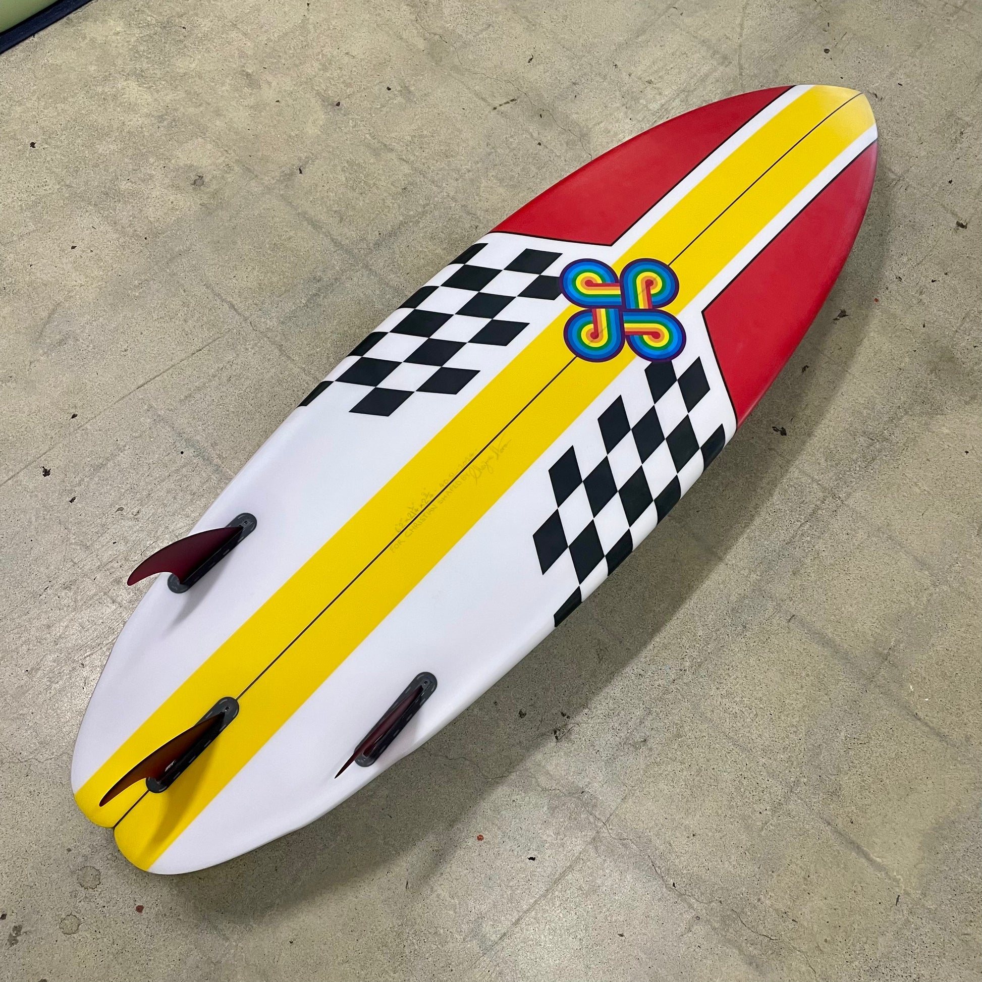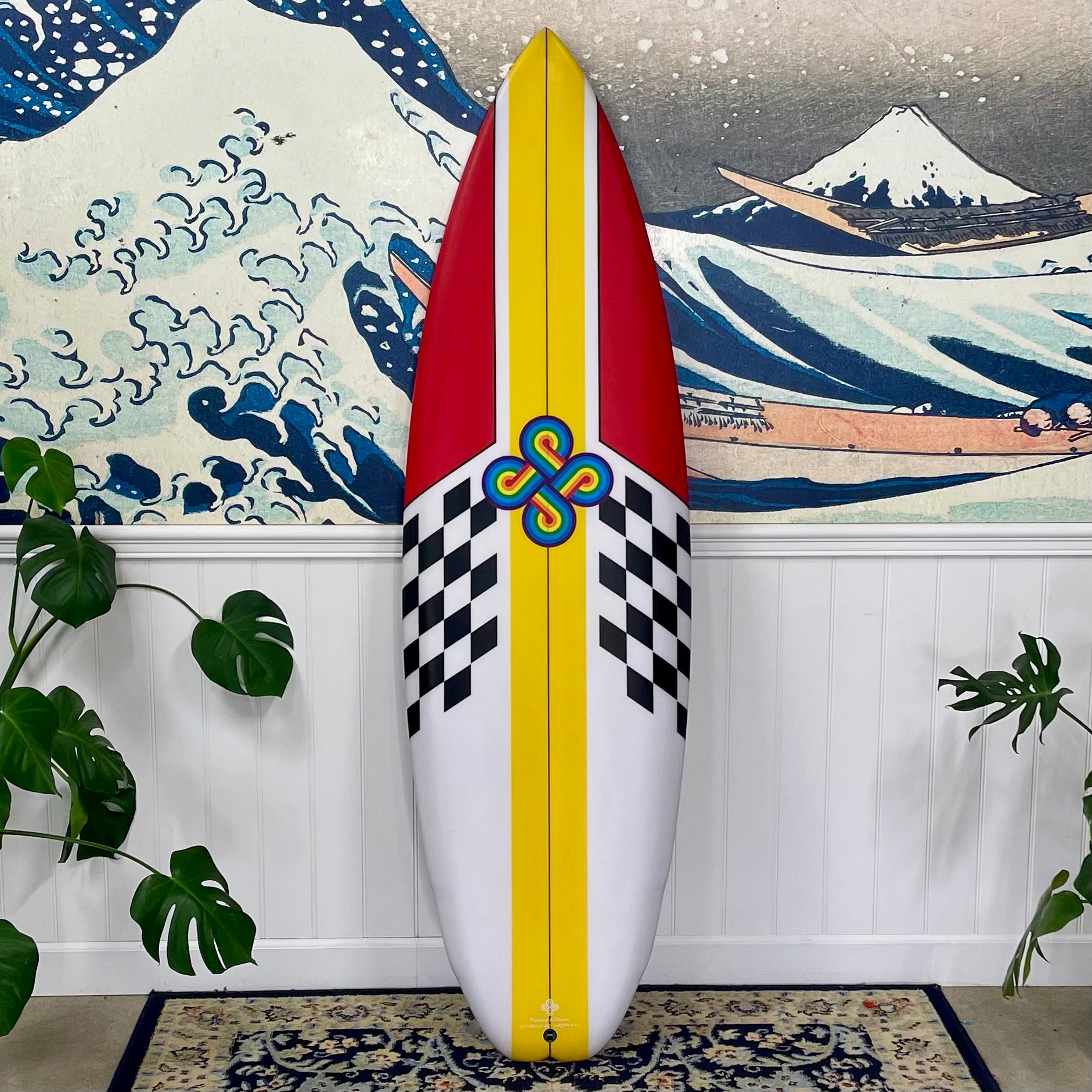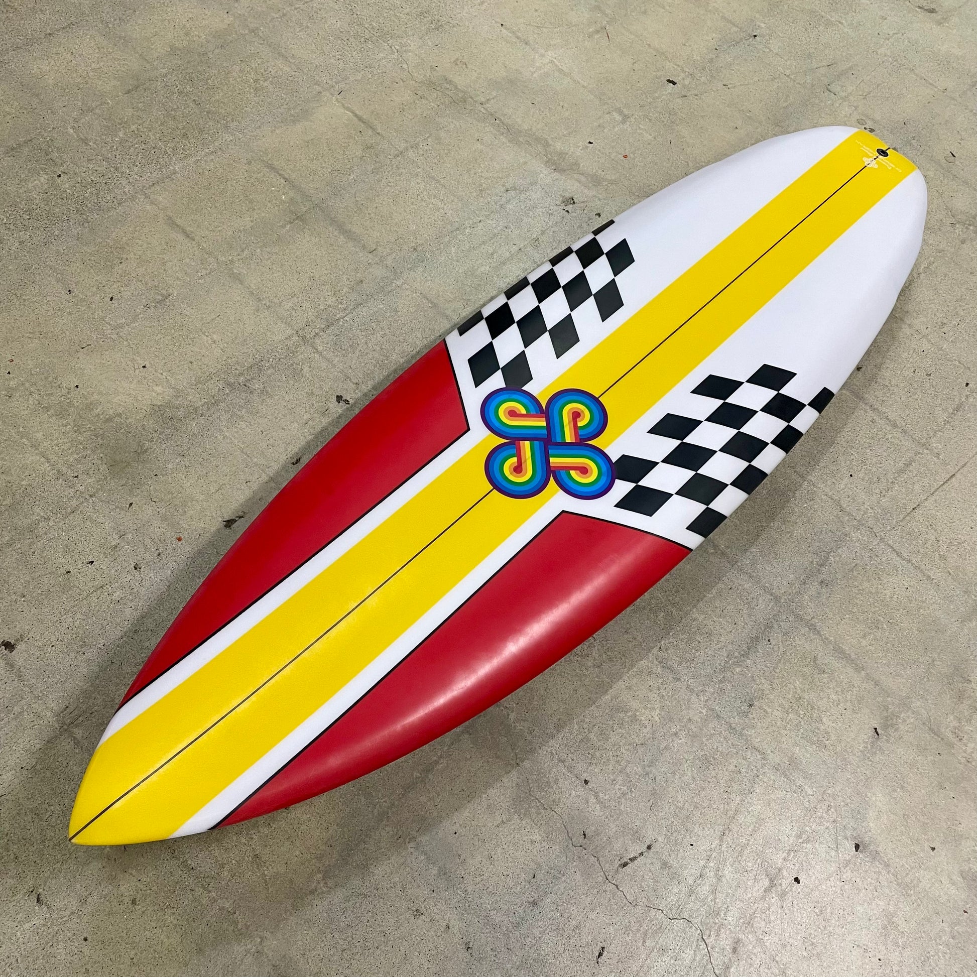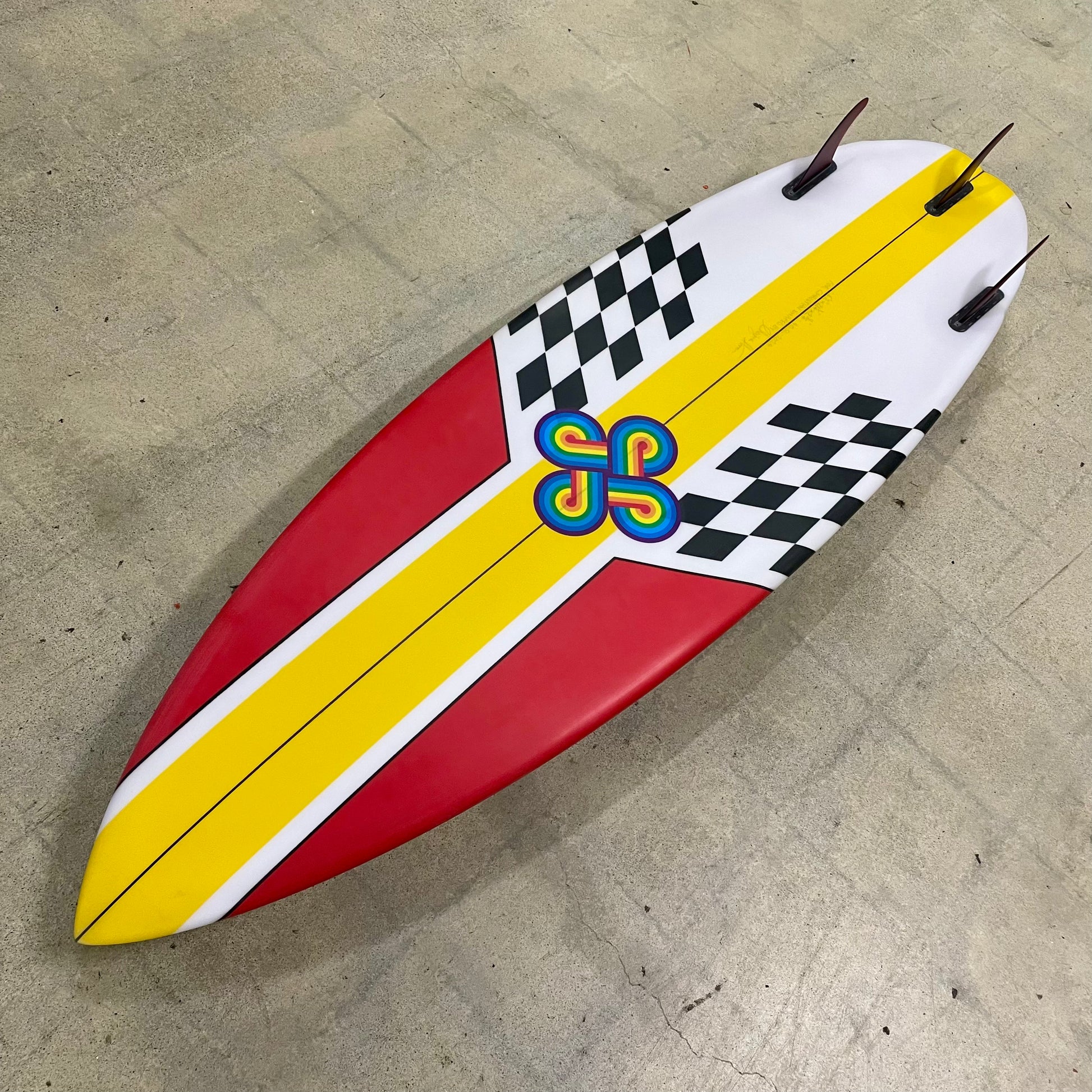Color: Red and Yellow with Black and White checkered board pattern