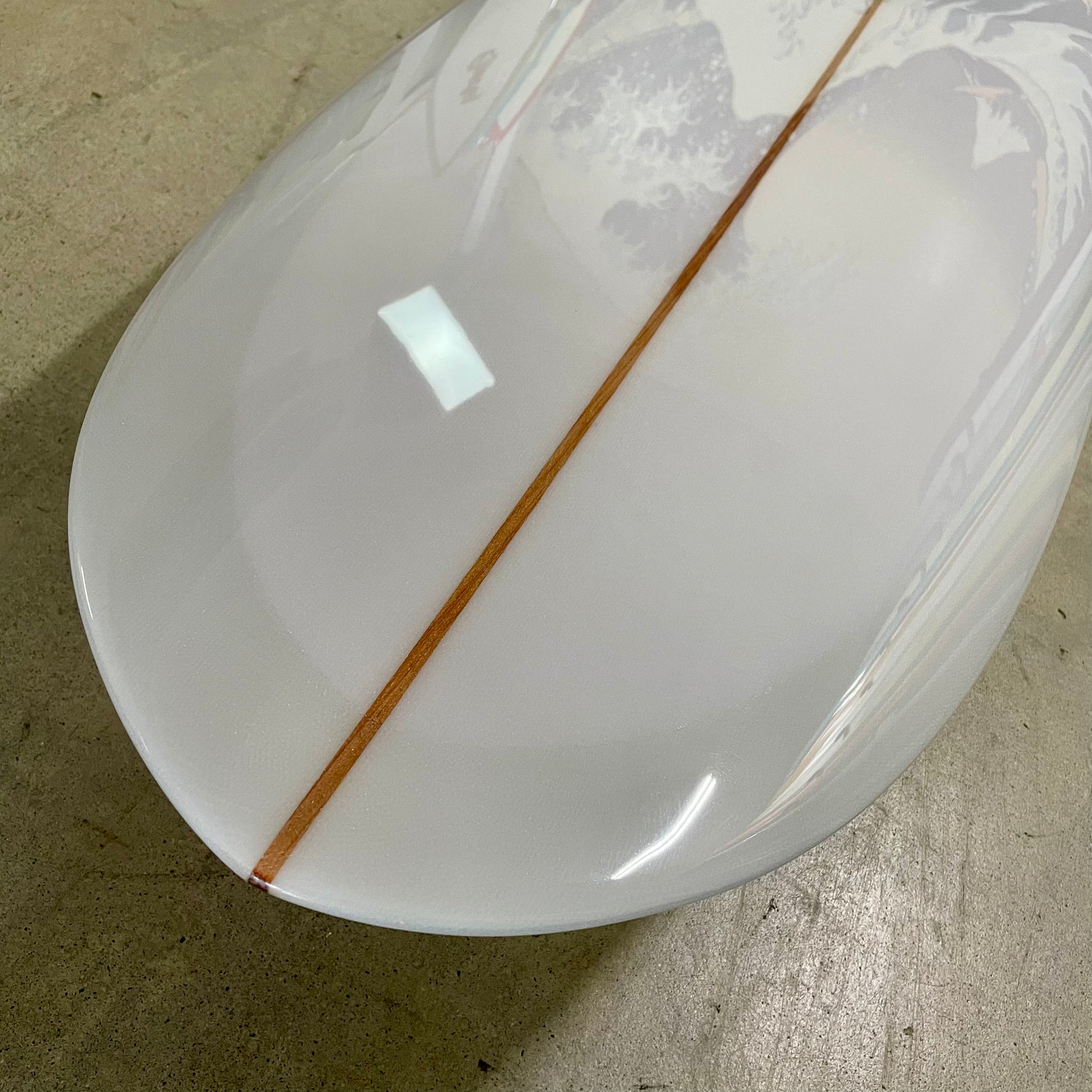 Designed by Skip Frye in 1966 for his G&S Signature Model, this model represents the refinements and increased performance elements of the mid 60s. Intended for the intermediate to advanced surfer that wants an all around performing board that can make aggressive turns off the tail as well as excellent control from the front third of the board while in trim and on the nose. Ideal for a variety of surf breaks and conditions from small to head high. Features a medium outline throughout with semi-blunt nose, wide point behind center and slight hip towards the tail for easy turning. Rails are medium 50/50 to thinly foiled off the tail for extra sensitivity. Bottom contour is flat to rolled "Vee" in tail with subtle concave in nose optional. Rocker is even and balanced for all around performance.