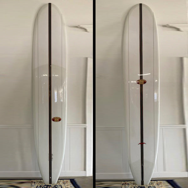 This design is the most well-rounded and versatile of Donald's classic retro line. With a broad, easily noserideable nose, and wide, surprisingly loose tail, this board is what every one of Donald's team riders has in their competitive quiver. With its 60/40 rails, single fin, square tail and volan cloth this board is the perfect compliment to Donald's R-Pin Retro. Where the R-Pin Retro excels in shoulder high and bigger surf, the Model T's perfection lies in waves from shoulder high to ankle surf.